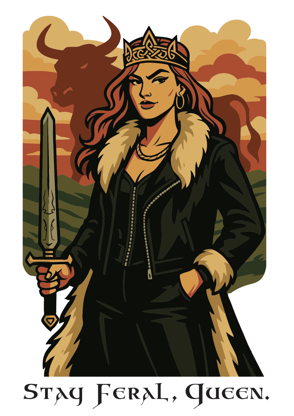Commanding, unapologetic, and dripping with mythic power, Queen Meabh is more than a design — she’s a statement. Inspired by the legendary warrior queen of Connacht, this piece blends Celtic fierceness with modern edge. Bold lines, fierce gaze, and untamed energy make it perfect for anyone ready to rule their own story.